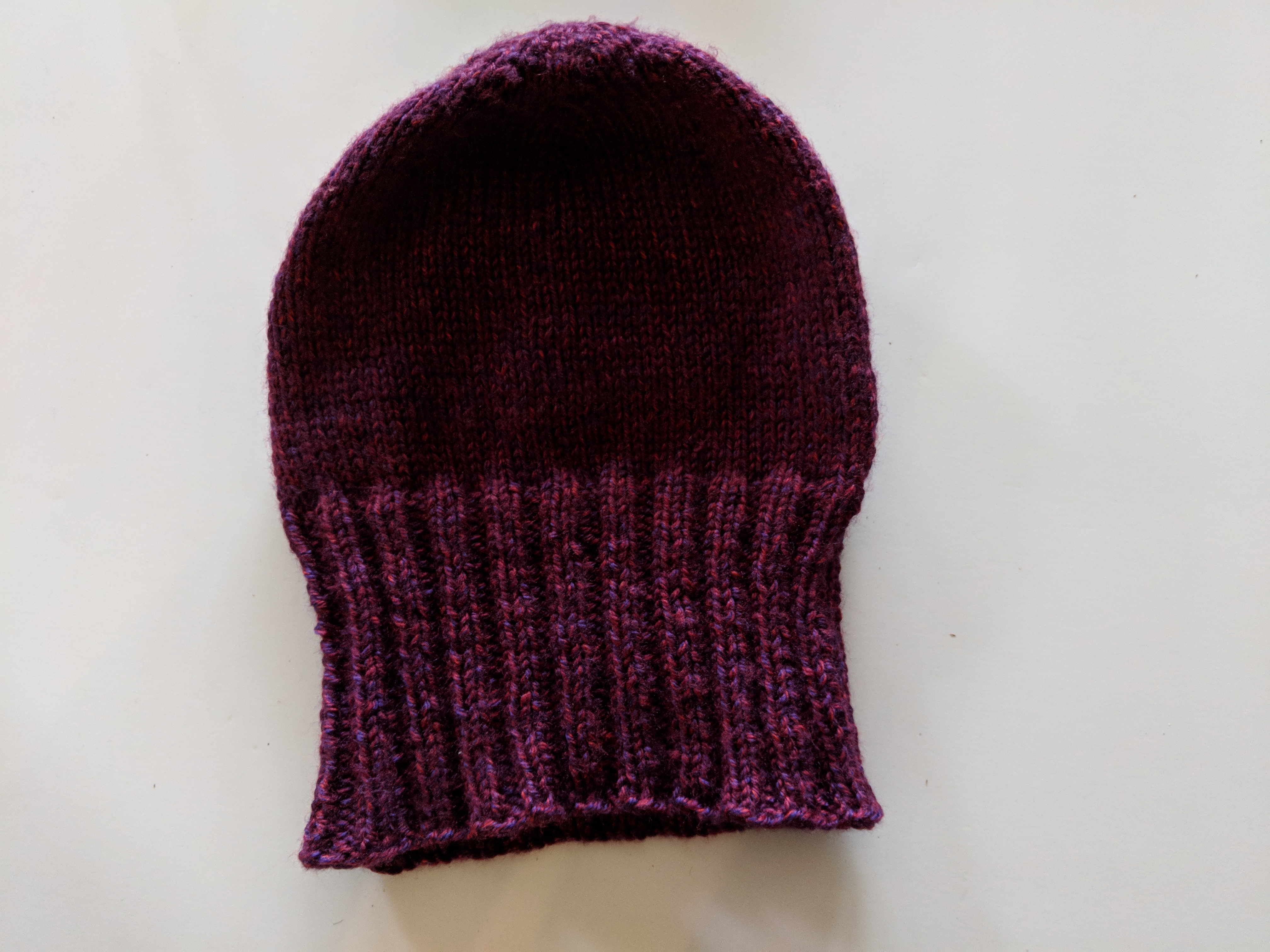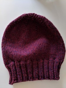 After reading and watching several online tutorials on how to knit a top down seamless hat, I cast on 8 stitches and began knitting the hat using the magic loop method (tutorial by Tin Can knits). I increased 8 stitches every other round till I had the number of stitches I needed. I knit the body of the hat in stockinette stitch pattern for several rounds and then knitted the brim using 2 x 2 ribbing pattern.