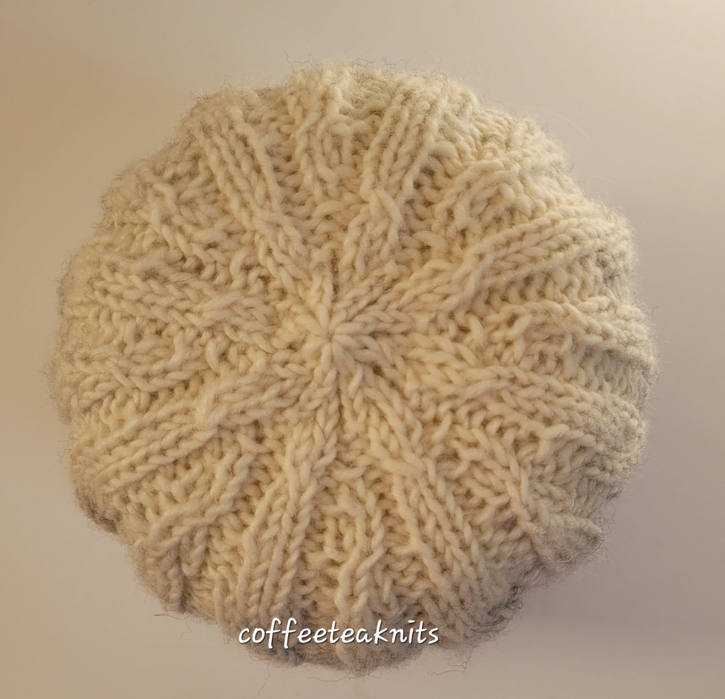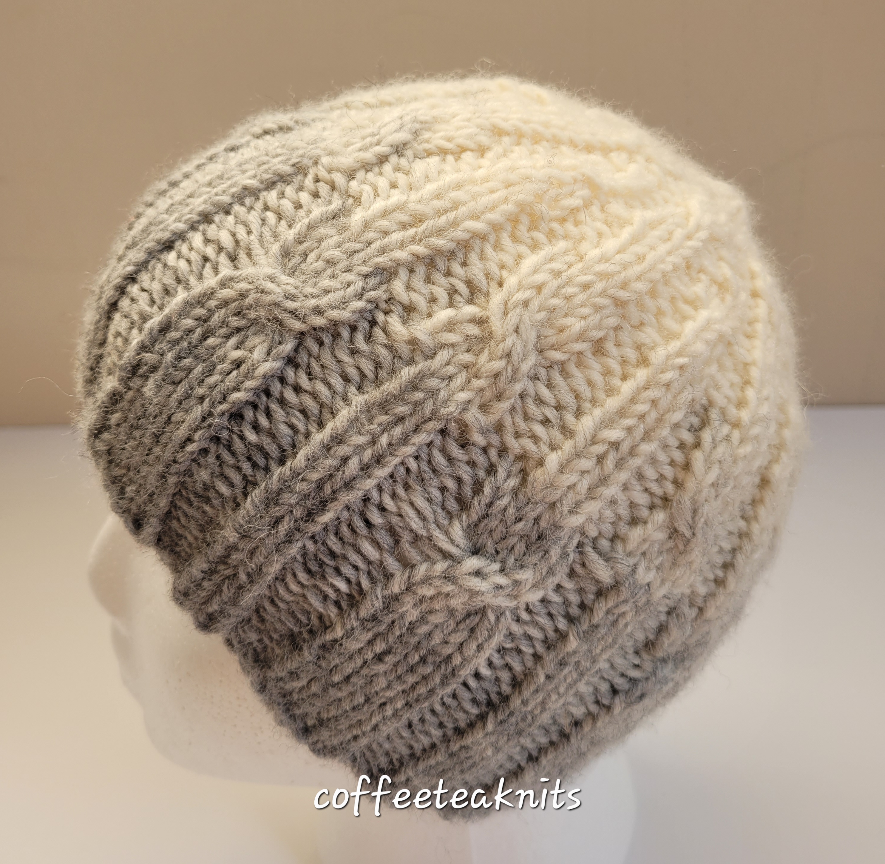 The Winterland Hat is knit bottom up and in the round. It has a simple cable stitch pattern and is a light and warm hat for this time of the year.