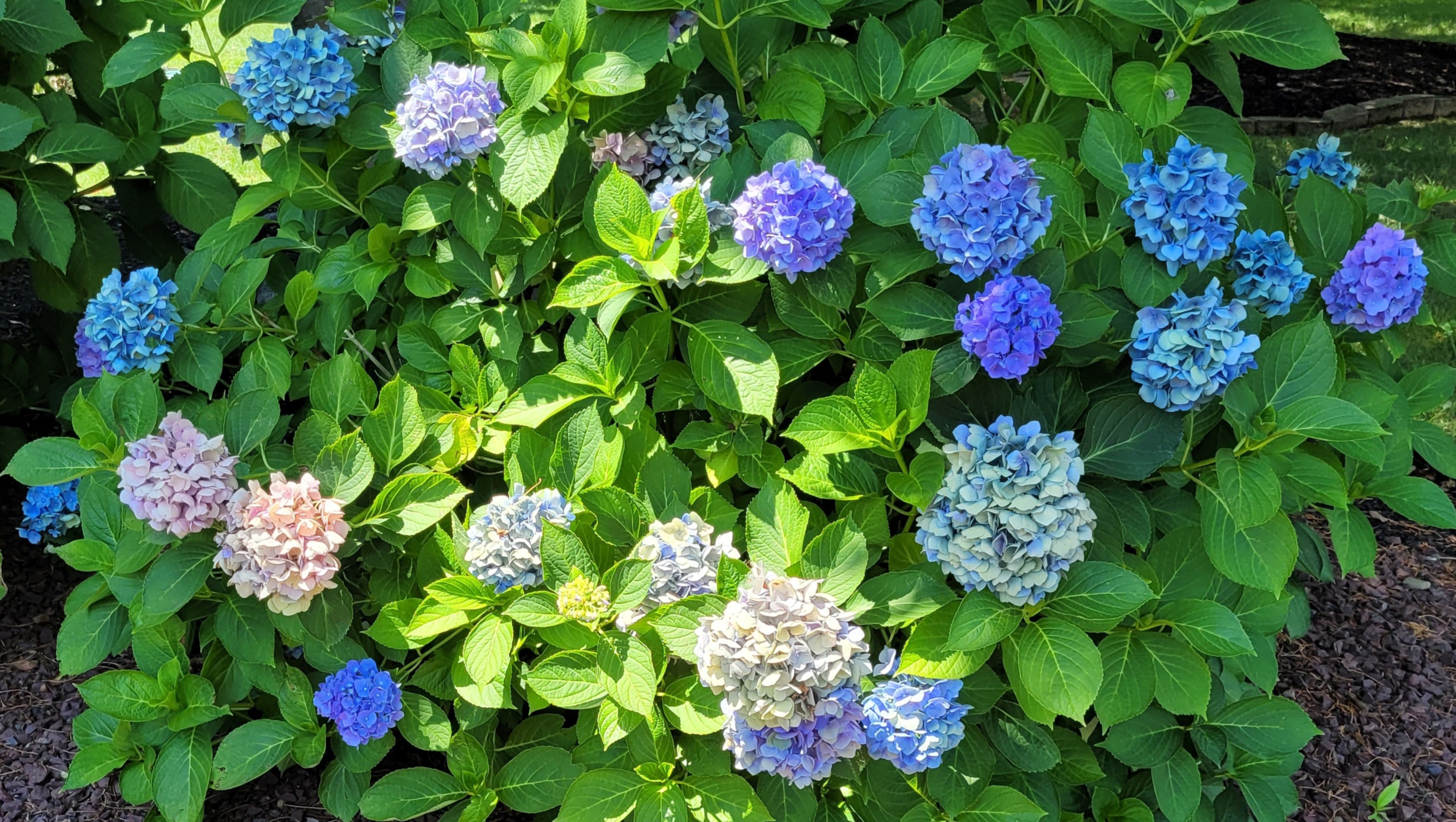 Five years ago I posted my first pattern “A Seed Stitch Mitered Dishcloth“. It was a time of social distancing and staying at home due to the coronavirus pandemic. Since we couldn’t go out much the yard and the flowers became our outdoor retreat. At that time the Hydrangeas were in full bloom (June-July) and I took a picture of these flowers with the “Seed Stitch Mitered Dishcloth”