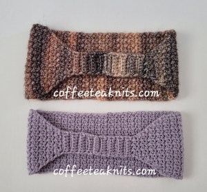 Gauge: 5.5 stitches per inch for Earwarmer 1 and 5.0 stitches per inch for Earwarmer 2 in the variation crochet moss stitch pattern