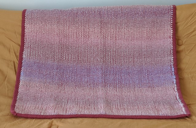 The warp yarn for the blanket with the crocheted border was sport weight while the warp yarn for the blanket with the knitted border was worsted weight. The two different weft yarns used for both blankets were super bulky (yarn weight of 6).