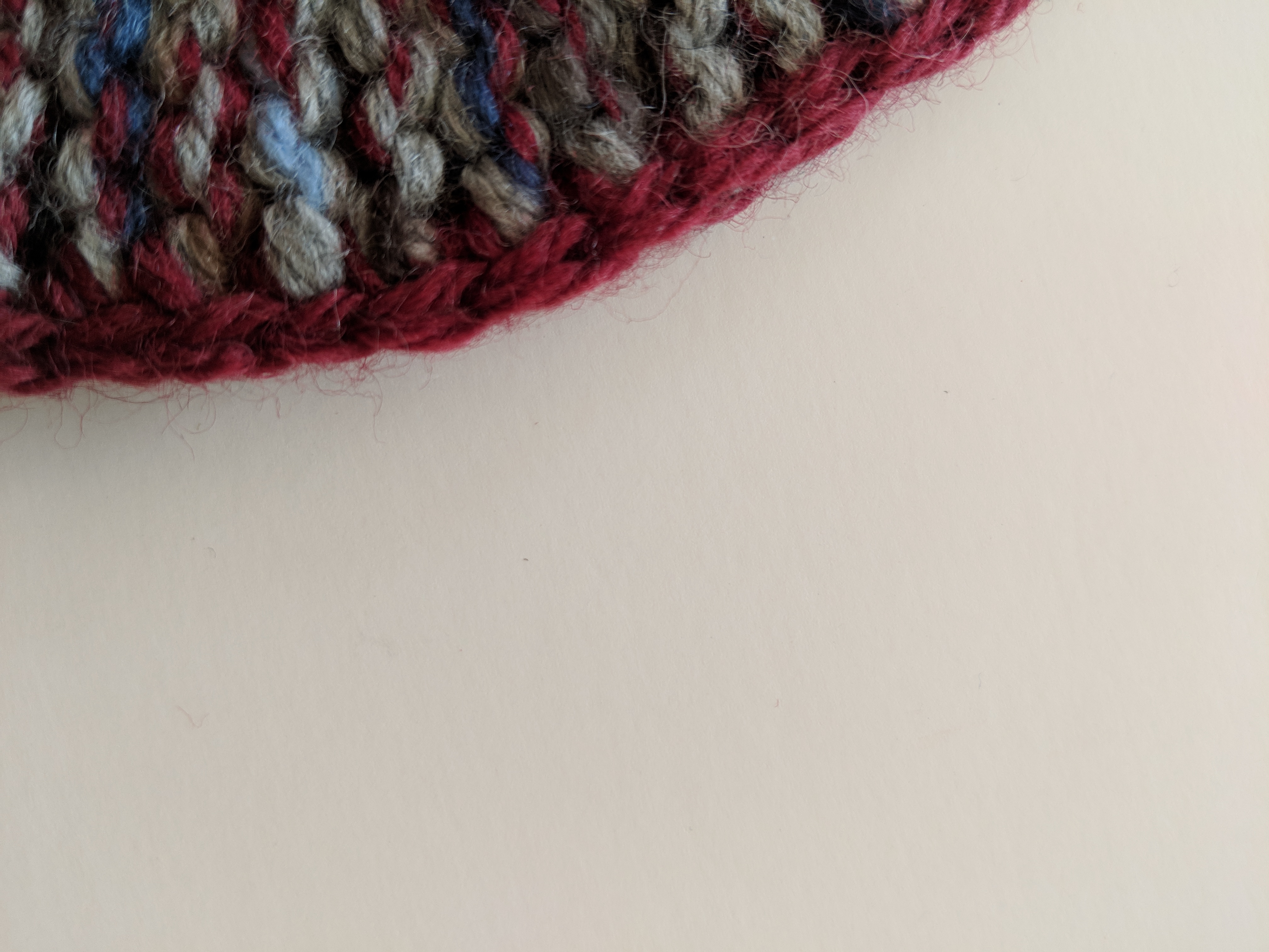 The pattern is based on Simply Notable’s Crazy Eights dishcloth. Instead of a dishcloth I used four strands of yarn held together to knit a hotpad/ trivet mat. I also used a kitchener stitch instead of mattress stitch to join the two knitted ends together. I would prefer a seamless round dishcloth or trivet mat.