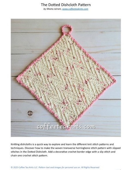 - It has detailed knitting instructions to knit the Dotted Dishcloth with the textured woven transverse herringbone knit stitch pattern